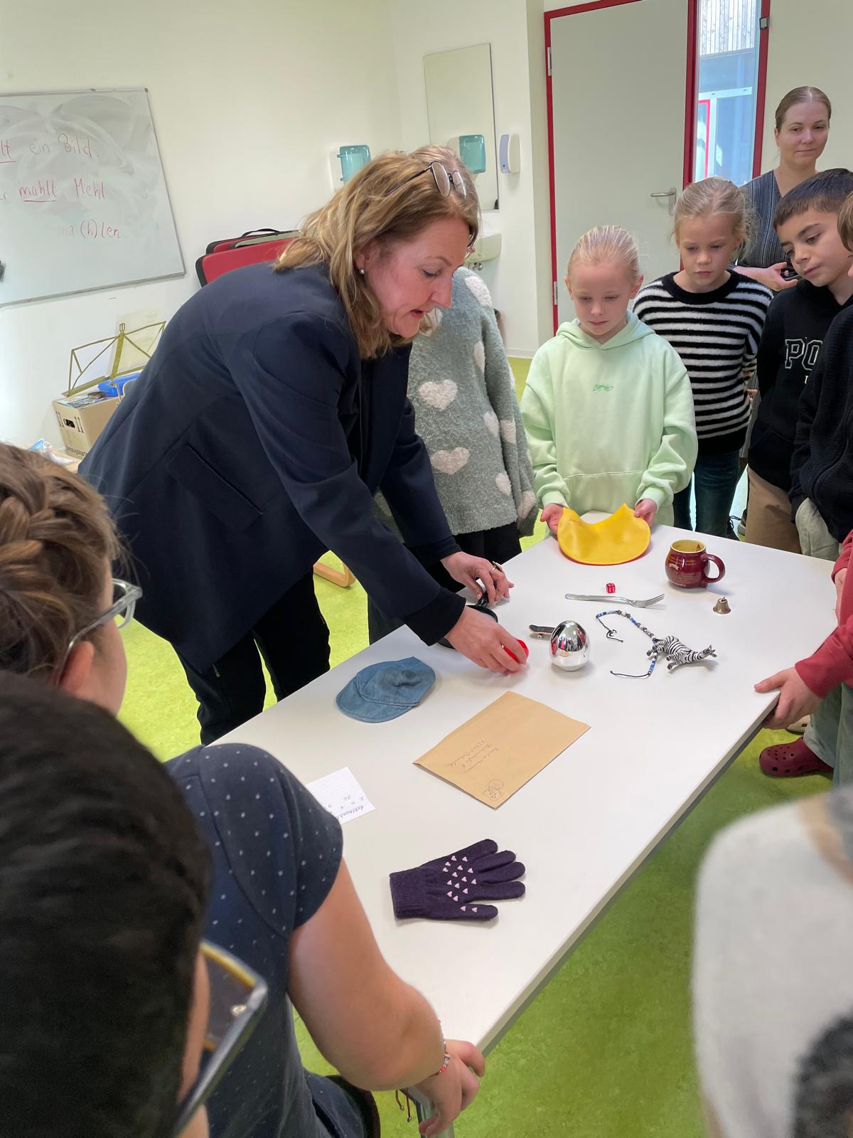 Er hat sich wie immer viel Mühe gegeben, doch am Ende entdeckten die Kinder der Klassen 1b und 4a alle seine Verstecke! Nach der aufregenden Suche hat sich dann auch jedes Kind die süße Belohnung verdient! 🙂 - Brandschutzerziehung für unsere Viertklässler 19.03.2026